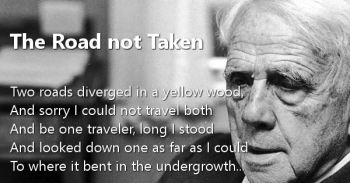 Two ROADS di-VERGED (in a) YEL-low WOOD,