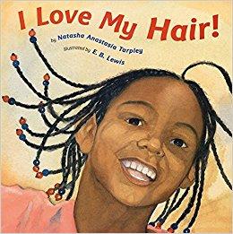 I Love My Hair! is a book that portrays a girl named Keyana getting her hair brushed by her mother. It hurts and she doesn't like it, but when her mother is done, she reminds her that her hair is beautiful and she can wear it in any style she chooses.