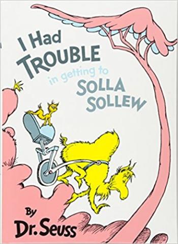 1. I Had Trouble in Getting to Solla Sollew is my all-time favorite Dr. Seuss book, hands down. It's the story of a... well... a Seussical creature who lives in a place where he's constantly getting attacked by other Seussical creatures with strange names. But then he hears the tale of a place called Solla Sollew, "where they never have troubles, at least very few." So off he goes in search of this Seussian utopia, but he finds the journey to be anything but easy. After many detours and setbacks, he finally arrives at his destination, and finds that there's only one tiny trouble -- but it prevents him from getting in. The message I took from the story is that you can't run away from your troubles -- in the end, he learns to face them. As a kid, while I appreciated the ending, it also gave me this sad feeling -- like, I really wanted to see what was inside Solla Sollew. It looked so amazing. It was like realizing utopia isn't real, which I guess is just the kind of let-down we all need at some point. But sometimes I would still have dreams about it, like the Seussical creature did -- what would it be like to fall asleep on a pile of marshmallow-stuffed pillows? Probably we don't have to invent utopia to find out.