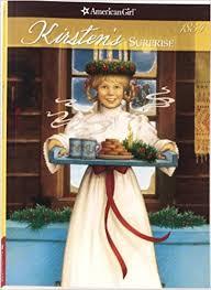 Kirsten is a member of a pioneer family that emigrates from Sweden in the first book in her series. In Kirsten's Surprise, Kirsten and her father are caught in a blizzard on their way home from retrieving the family's trunks from their journey. But in the end, we get a glimpse of some of the traditions involved in the Swedish celebration of Saint Lucia's Day.