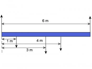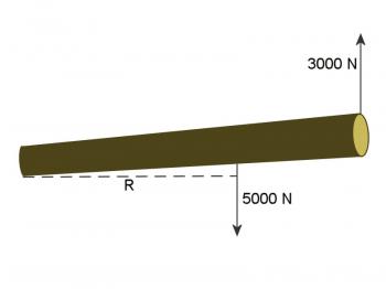 Start by drawing a diagram. Show the weight as a downward force nearer the heavy end than the light, and a distance R from the light end. Show an upward force of 3000 N at the heavy end. See Figure 6.2.4.
